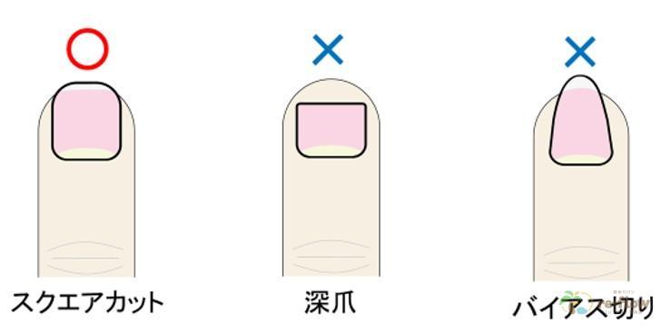 深爪・バイアス切り 端っこを斜めに深く切ってしまうと、爪が伸びてきたときにより鋭角に皮膚へ刺さります。これが「負のスパイラル」の始まりです。