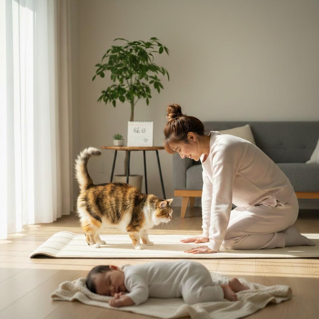 1. 猫の日限定!産前産後ママの「背中ガチガチ」を癒す魔法のストレッチ