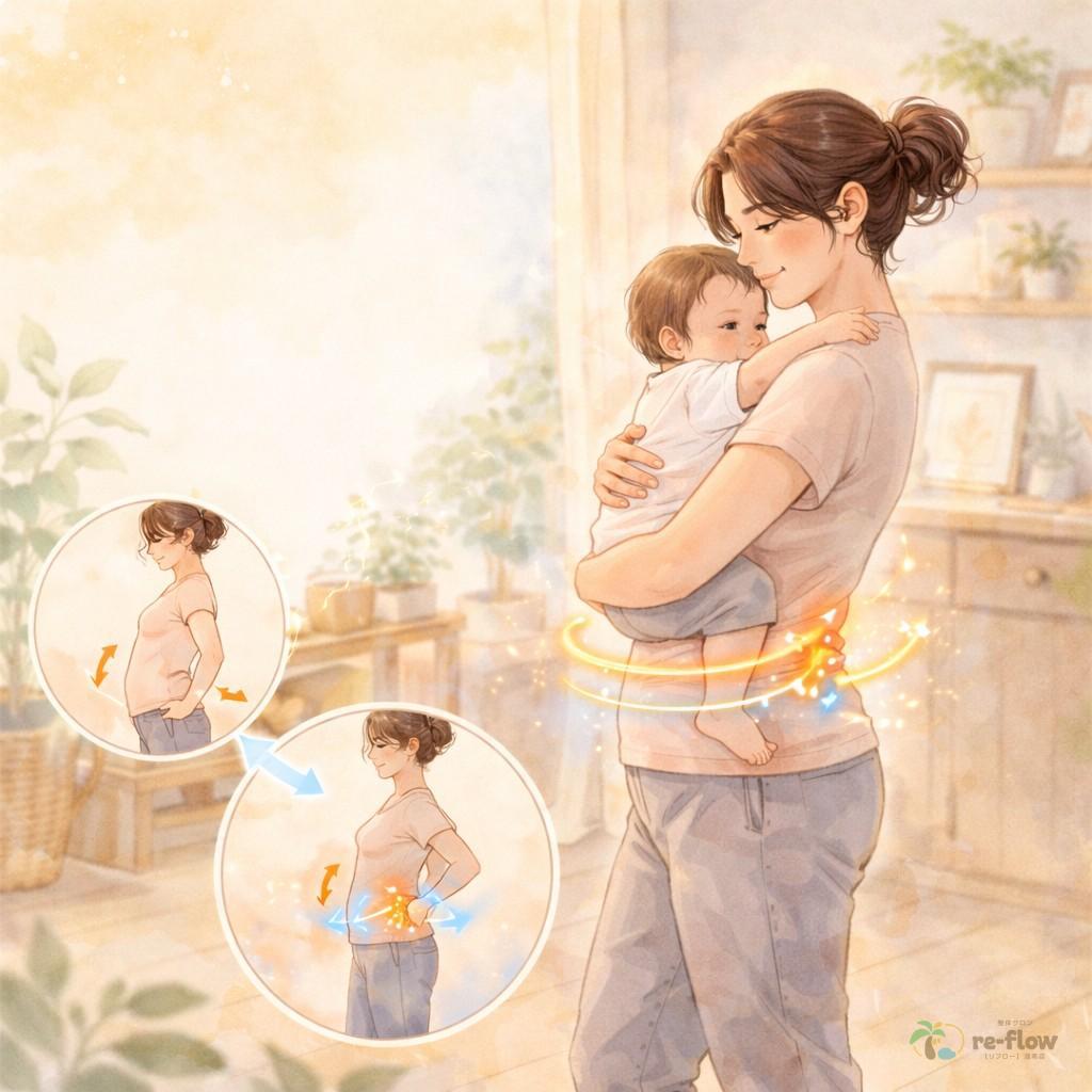 出産後、鏡を見て「あれ?お腹が戻らない…」とショックを受けたことはありませんか? 腹筋を頑張ろうとしても、育児に追われて時間はゼロ。そもそも腰が痛くて腹筋なんて無理!というママも多いはず。