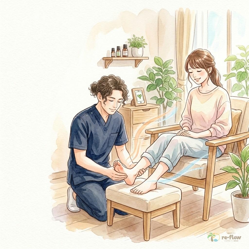 実は、巻き爪と外反母趾は密接に関係しています。足のアーチが崩れることで指先に変な力が加わり、結果として爪が巻いてしまう…。 当店では、ただ爪を広げるだけでなく、足全体のバランスを考慮した施術を行います。足元の土台が整うことで、歩き方が変わり、繰り返す足のトラブルから卒業するきっかけを作ります。